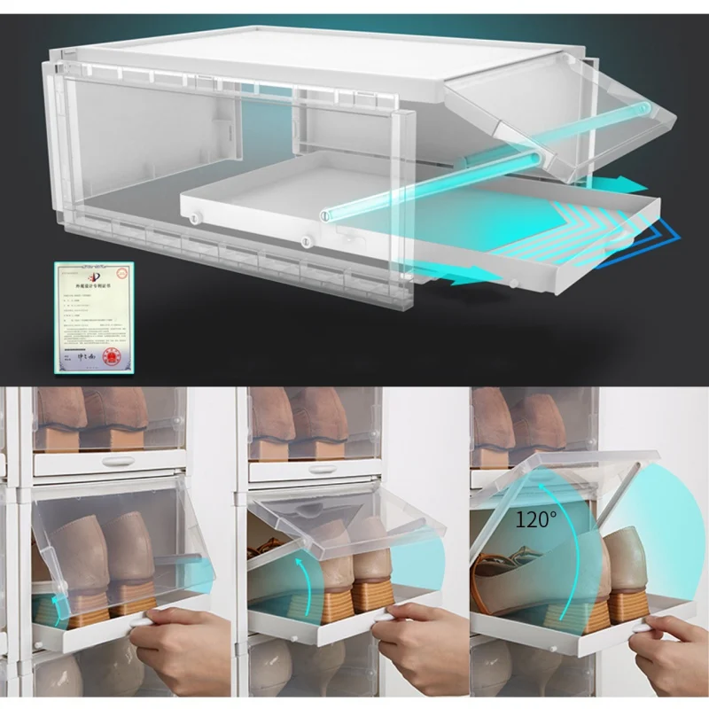 HIGH QUALITY Shoe Storage Rack PP Material Drawer Type Box Transparent Folding Shoe Save Space Cabinet Organizer